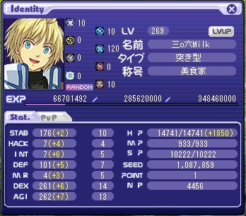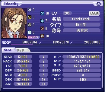 ステ(装備付けてない状態で撮ったから属性値は無視で)